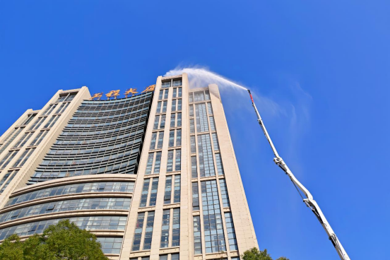 此次高層建筑火災模擬實戰演練,直觀檢驗了JP65舉高噴射消防車對工程大廈的應急救援能力,提升了高層建筑突發火災應急處置能力,為保障工程大廈建筑安全及人員生命財產安全筑牢了堅實“防火墻”。