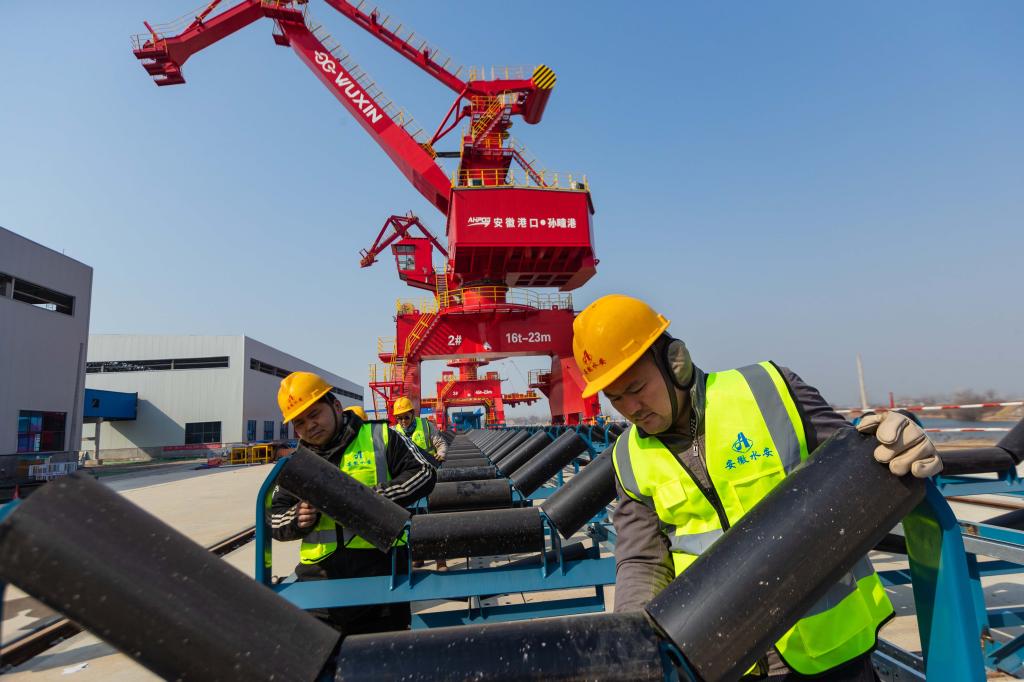 孫疃碼頭工程由安徽省港航集團、淮北礦業集團和濉溪縣政府聯合建設。項目自2021年7月份建設以來,建設單位方克服疫情等各種不利因素影響,不斷優化施工方案,執行掛圖作戰,搶抓工期節點,有效工期10個半月的時間,完成整體工程進度的85%,創造了安徽省內河航運港口建設新速度。目前,碼頭工程和配套鐵路專用線施工已近尾聲,預計6月底實現開港運營。