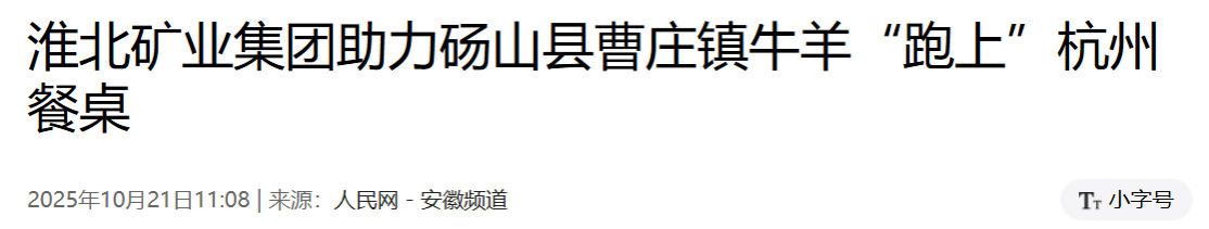 2023年3月,淮北礦業集團創新對口幫扶方式,促成杭州市西湖區與碭山縣曹莊鎮簽訂“杭州市西湖區菜籃子生產基地”合作協議,打通曹莊鎮農副產品直供西湖區的綠色通道。歷經兩年精心培育,如今包括曹莊鎮牛羊肉在內的碭山縣優質農副產品實現在西子湖畔“安家落戶”,邁出消費幫扶重要一步。